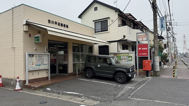 最後は「吉川平沼郵便局」です。ここは商業施設や住宅が並ぶバス通りにある局でした。