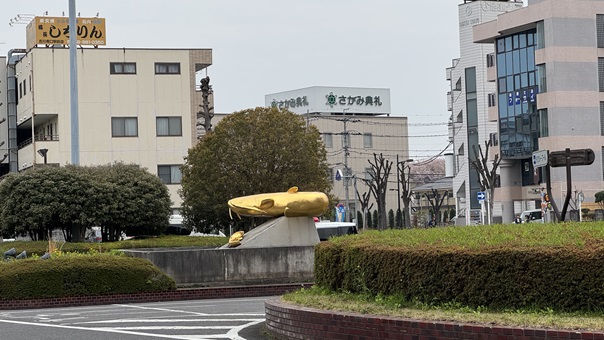 駅前広場には金の大きな「なまず」が鎮座。室瀬和美氏製作の「なまずの親子」です。吉川市の観光の主役はなまずなので駅前にこのような立派な像があるのですね。