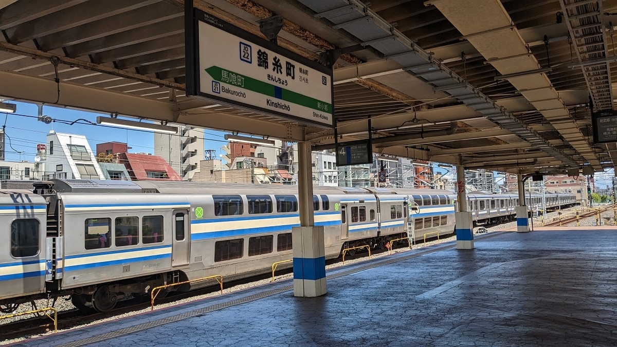 この間総武本線の錦糸町駅を利用しました。隣に快速電車の留置線がある駅です。