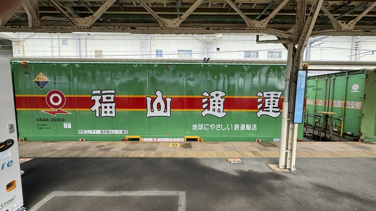 反対側のホームへ。福山通運の専用列車ではなかったようです。